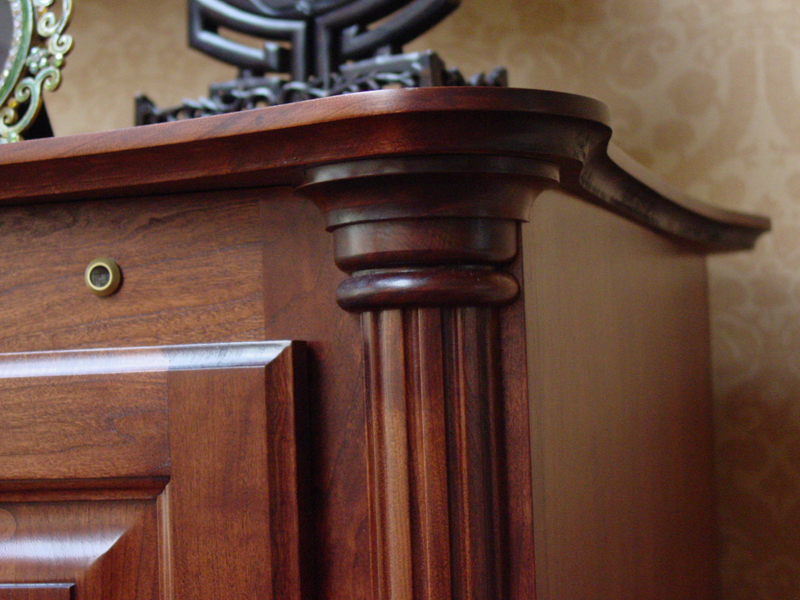You can design every detail, from the shape of the piece, wood species and stain color down to the type of carvings and moldings. You can also have it made to match or coordinate with existing furniture.